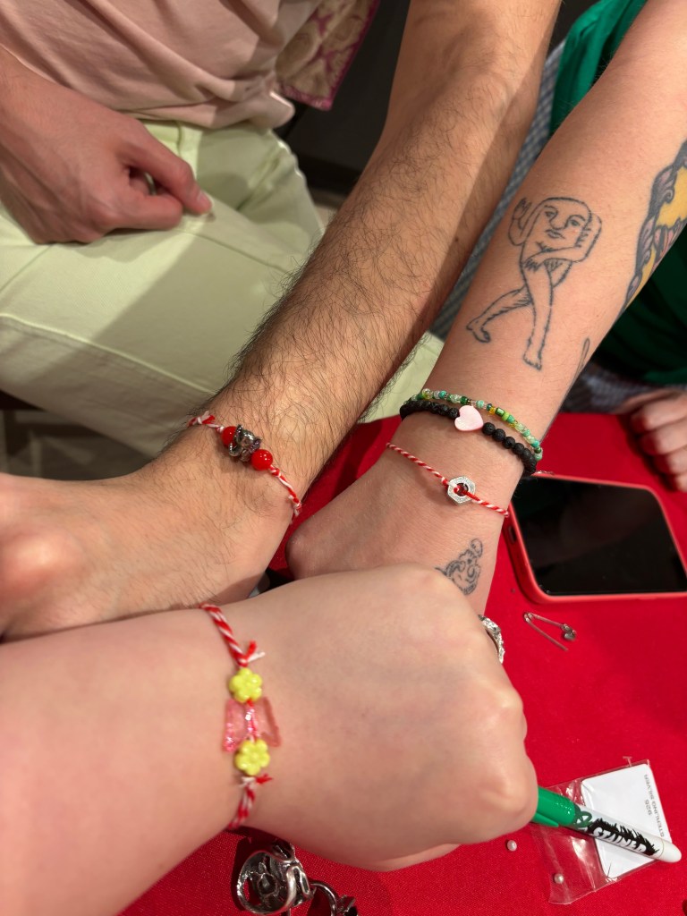 - Small decorative object made by an intertwined red and white thread, offered especially to girls and women on March 1st to celebrate the beginning of spring.